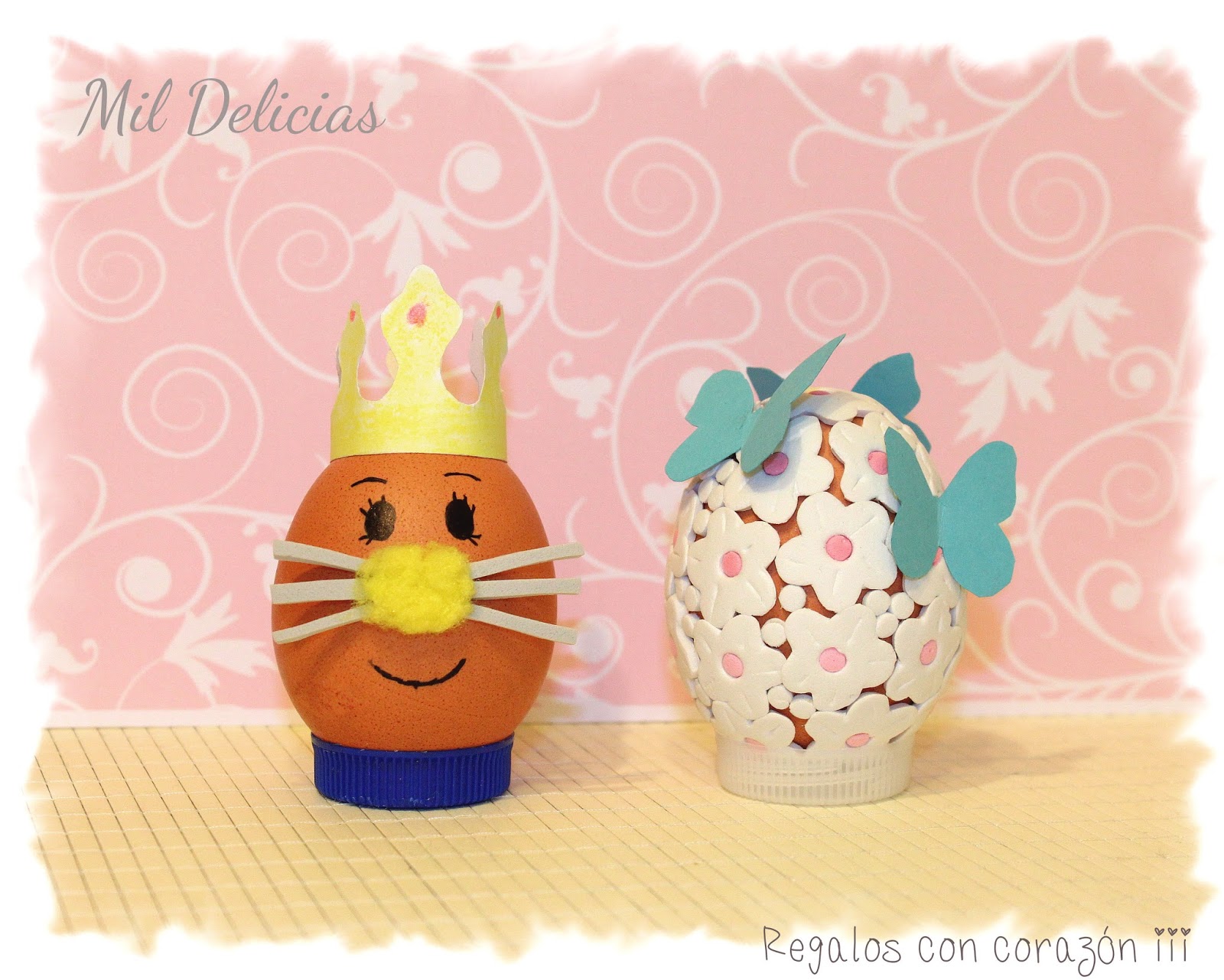 Este año tenemos un rey huevo y una primavera mariposil. Muy fáciles de hacer. Eso sí, el huevo primavera lleva su tiempo aún haciéndolo entre dos personas.